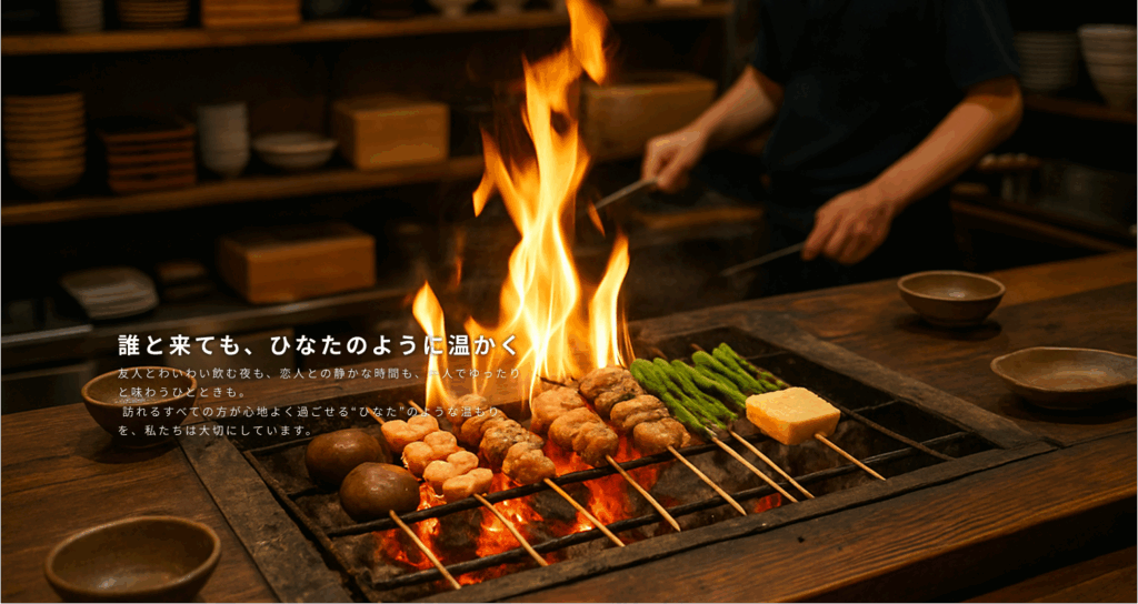 友人とわいわい飲む夜も、恋人との静かな時間も、一人でゆったりと味わうひとときも。 訪れるすべての方が心地よく過ごせる“ひなた”のような温もりを、私たちは大切にしています。