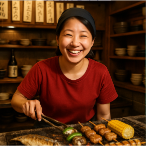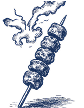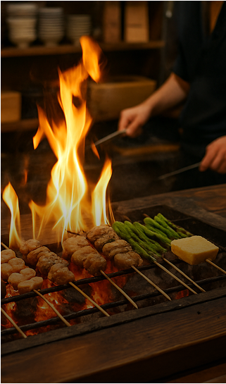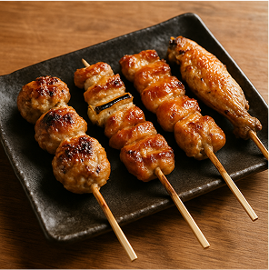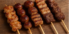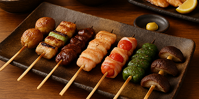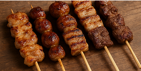 炭火でじっくり焼き上げた香ばしい肉串。 旨味を閉じ込める絶妙な火加減で、外はカリッと中はジューシー。