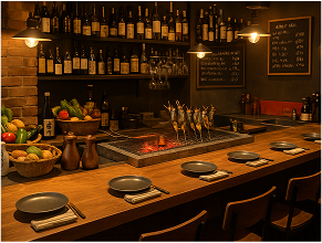 旬の食材を炭火でじっくり焼き上げ、香ばしい香りと料理に合う日本酒やワインを楽しむことで、日常の食事をちょっと特別な時間に変えます。